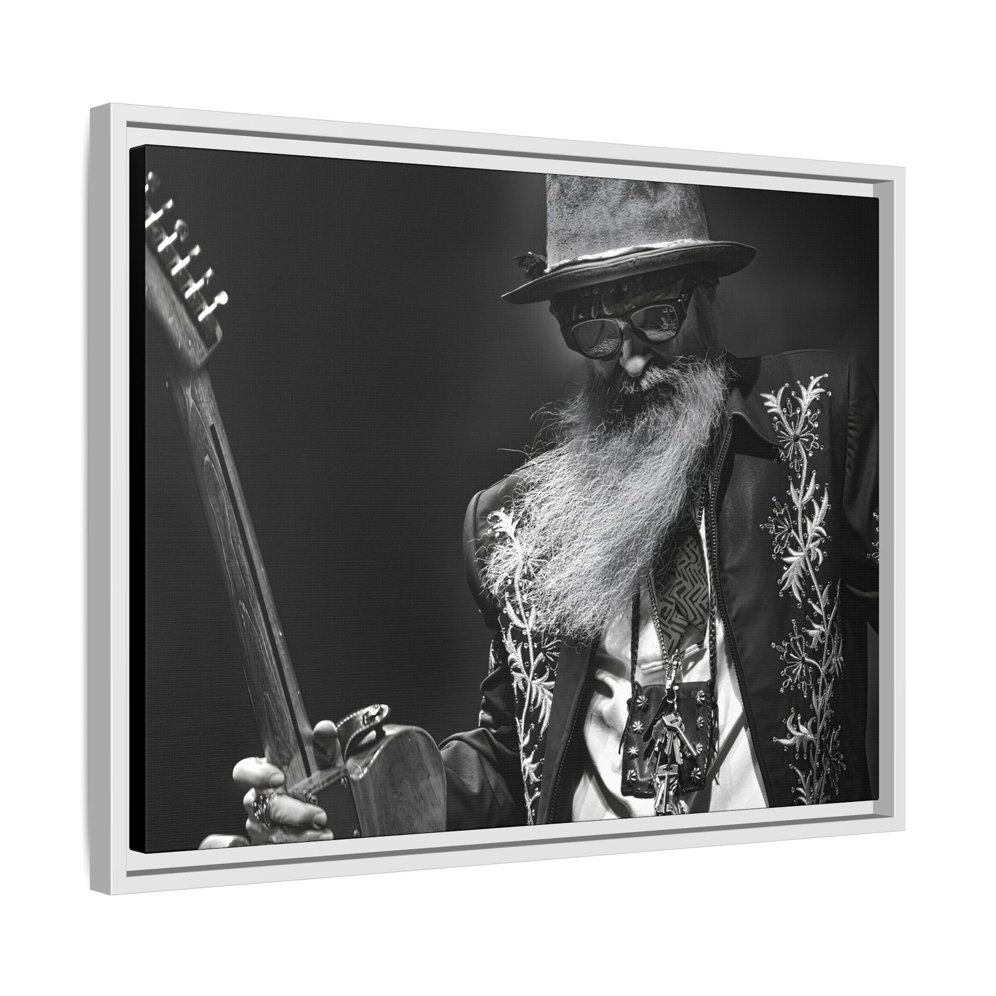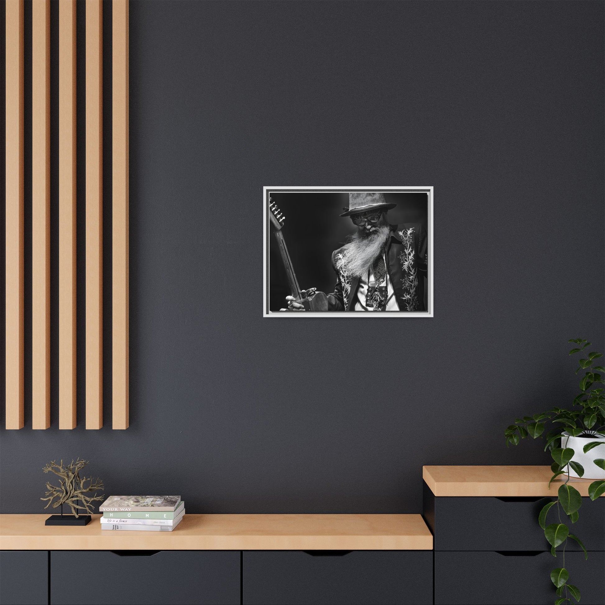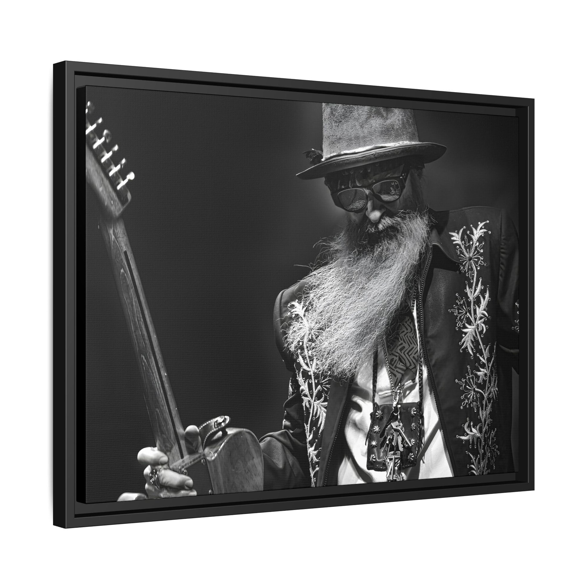 Stunning Framed Canvas Print of Billy F Gibbons by award winning photographer Rodney Bursiel. Ready to mount wall art for your living room, music room, game room, or anywhere else.