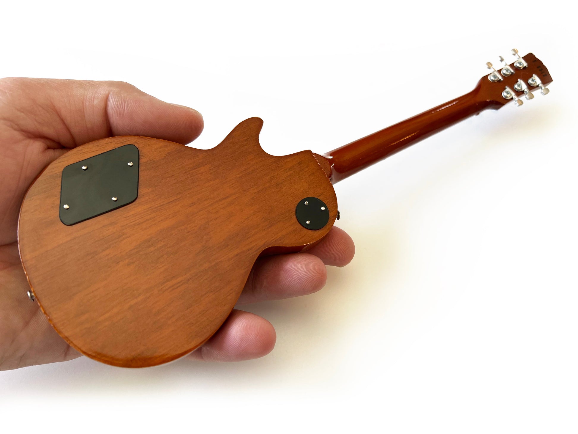 This miniature replica model honors the Holy Grail of electric guitars. The stain on this handcrafted collectible is an amazing reproduction of the original solid body instrument.
